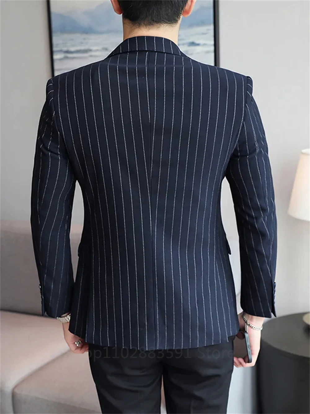 New Men'S Suit Jacket Slim Striped Single-Breasted Suit Business Casual Professional Formal Jacket Banquet Suit Blazer